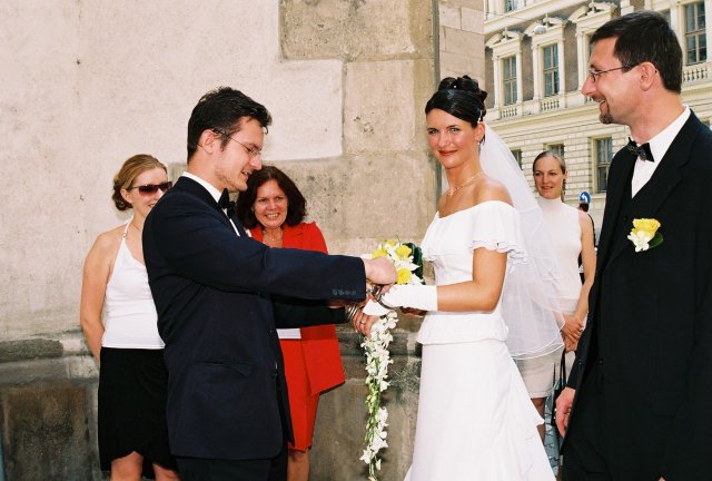 Rozhodli jsme se uvěřit mottu našeho svatebního oznámení: "Jak štastni a blaženi ti, jež ničemný svár není s to rozkmotřit; věrnou láskou jsou spoutáni tak, že teprve den smrti je rozdělí. (Horatius)" , a tak jsme spojili své životní cesty v jednu společnou v pravé poledne dne 25.6.2005 v kostele sv. Jakuba v Brně. Děkujeme všem, kteří nás v tento den podpořili a těm, kteří s námi nebyli, chceme ukázat, jak nám spolu bylo hezky... a stále je!!!