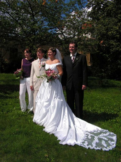 Chtěli bychom poděkovat všem, kteří přišli a užili si s námi tento pro nás tak krásný den!Hlavní poděkování patří rodičům a svědkům !Brzy po ránu nám pršelo štěstí a pak se počasí umoudřilo a bylo nádherně!Všechno jsme stihli včas a v pohodě s úsměv…