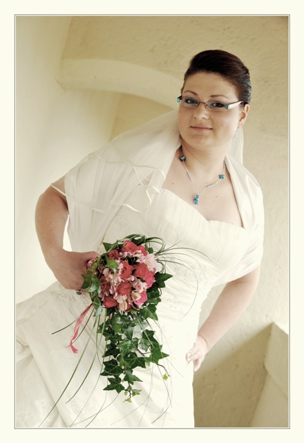 Svatební den začal v 6 hod ráno, kdy jsme s ženichem vstali. Kadeřnice dorazila jako první. Vytvořily jsme účes a vzápětí přijela i kosmetička. Ženich jel pro kytičky. Postupně se začali všichni sjíždět a průběžně se seznamovalo, jedlo, krášlilo se u kadeřnice a kosmetičky (já jsem na makeup měla jít těsně před odchodem)... A já jsem mezi všemi pohodově proplouvala, plná humoru... a najednou bylo tolik hodin... Tedy že jsem byla ve skluzu! Makeup šel bezva, ale jak jsme v té rychlosti stihli obléct šaty, ošperkovat mě, dostat požehnání od rodičů... to byl fofr :-)