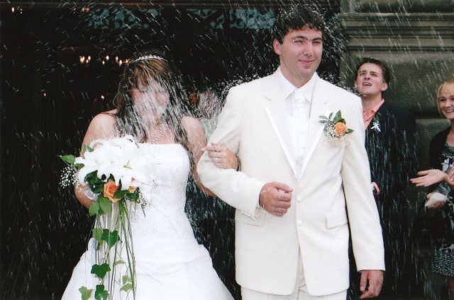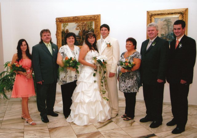 SVATEBNÍ KYTKY : u tohoto tématu bych se mohla rozepsat jako blázen, ale nebudu tady zdržovat dlouhým čtením, ale to, jak mi v plzeňském květinářství Slaměnka sama majitelka hnedla odmítla udělat svatební kytku a malou ženichovi do klopy tady napsat musím, prootže s takovým hnusným jednáním jsem se ještě nesetkala. Chtěla jsem totiž od ní udělat jen tyto dvě kytky, s tím, že zbylé kytky si nechávám udělat ve Stříbře, protože je to 30 km od Plzně a ženich by mi je tam přivezl ve svatební den až hodinu před svatbou a to jsem nechtěla. jenže ta kráva ( s prominutím ) to prostě nemohla pochopit a pořád něco drškovala, tak jsem si u ní nenechala udělat nic a zašla jsem do květinářství Fantazie na plzeňském náměstí a to nebyl jediný problém. Naopak, svatební kytka se mi tak strašně líbila, že jsem jim tam po svatbě přišla osobně poděkovat a přinesla výslužku. Druhou polovinu kytek jsem si tedy nechala udělat ve Stříbře u paní Matuškové a všichni svatebčané jen vzdávali hold, jak jsou ty kytky krásné, takže tady taky maximální spokojenost a mohu obě dvě květinářství jen a jen doporučit.