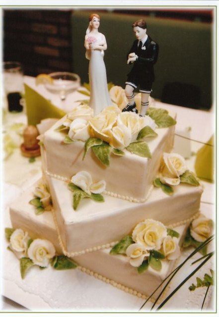 SVATEBNÍ DORT : už na svatebním veletrhu v Plzni jsem se zamilovala do dortové panenky, kteroutam předváděla kaznějovská cukrárna Malinová. Proto jsem si ji na svůj svatební den také objednala. Šaty měla celé z marcipánu, což potěšilo nejednoho svatebčana a navíc cena 500 Kč byla úplně nečekaná, protože jsem čekala mnohem víc. Hlavní svatbní dort jsem si nechávala péct od kamarádky mé mámky, která je vyučená cukrářka a musím říct, že tak, jak jsem ze začátku dort odjinud než z cukrárny nechtěla, tak tenhle, když jsem ho poprvé uviděla mi zalil oči slzami, protože byl ješt mnohem hezčí než na obrázku, který jsem přiložila jako mustr.