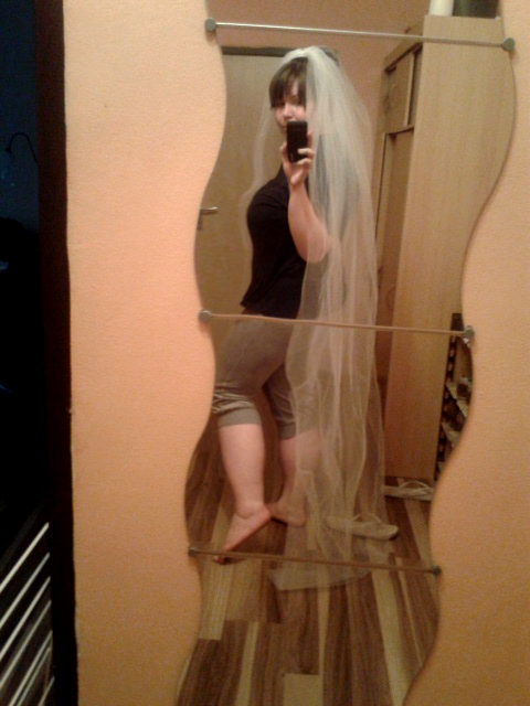 Dneska mi došel závojík z Camelly, nebyl pro ně podle mých požadavků problém ušít dvoumetrový, jednoduchý, hladký. Závoj je na hřebínku a je jednoduše úžasný...už i má kočka si ho oblíbila (takže jsem ho zase rychle (ač nerada) musela schovat.