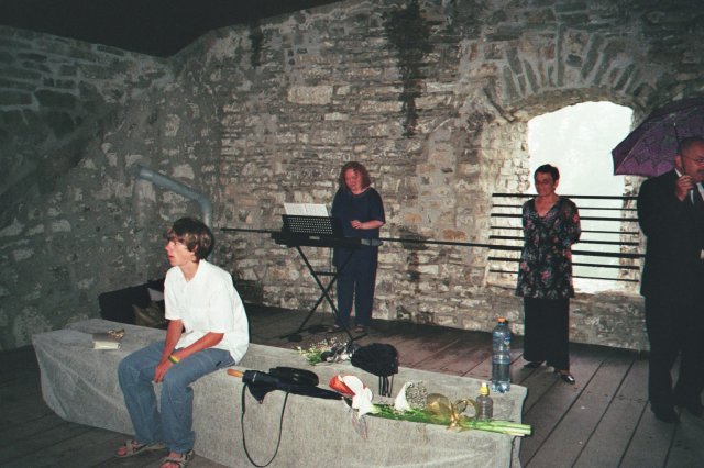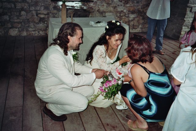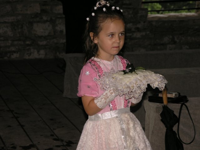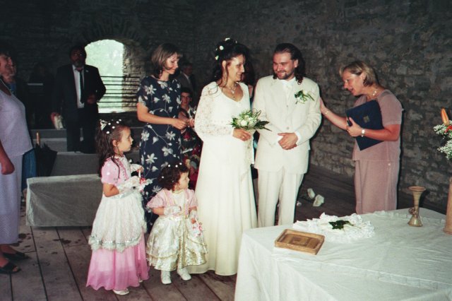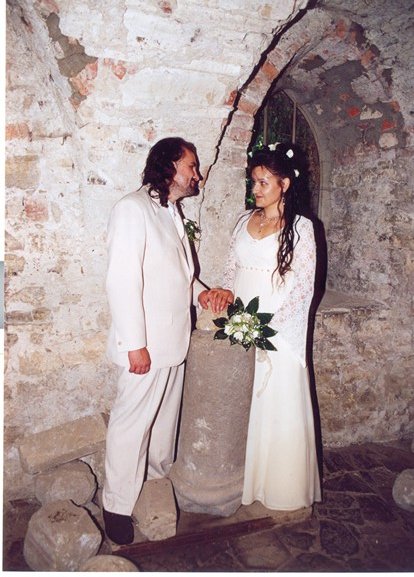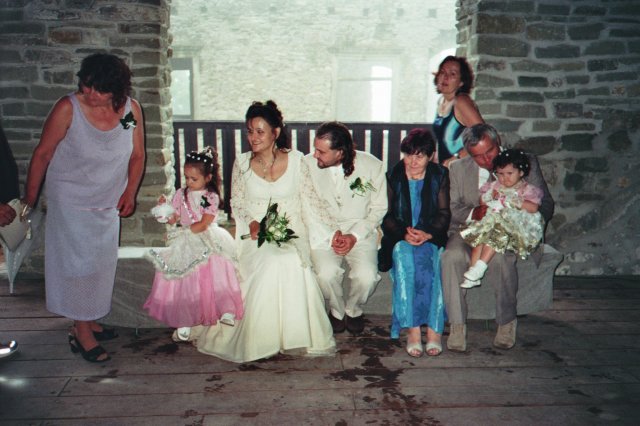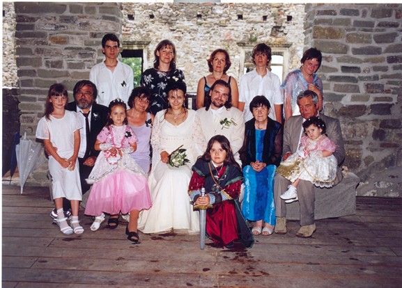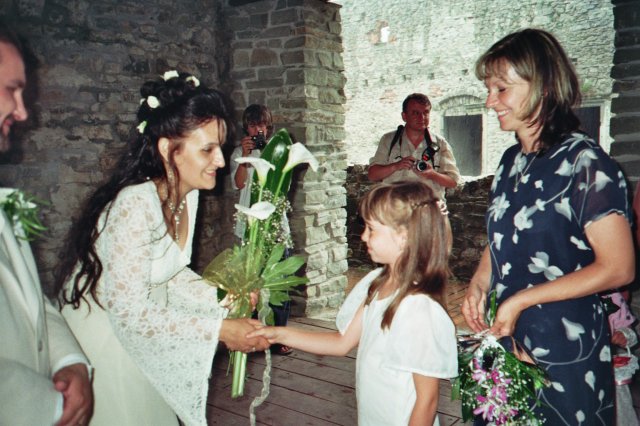 Veliké PODĚKOVÁNÍ mé MAMINCE, která nám ušila překrásné šaty pro nevěstu - hradní paní, nádherný oblek pro jediného rytíře mého srdce, šatečky našim dceruškám princeznám Nikolce, Elišce a Sáře a dokonce oblékla i našeho synáčka Daniela alias Boromira. Tímto se jí moc omlouvám za neustálé popohánění a děkuji i mému tatínkovi za trpělivost při nekonečných hodinách, které jeho žena strávila u šicího stroje.
