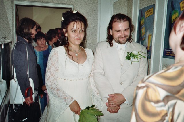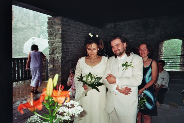 Po všech letech čekání a neskutečných starostech, přišel konečně TEN DEN a z nás jsou manželé. Bylo to nádherné, i když plno věcí nevyšlo tak jak mělo, jinou kyticí počínaje, přes nervozní svatebčany, neuvěřitelný slejvák, tudíž zničené účesy, a jiným obřadním místem, než jsme měli zaplaceno, konče. Nicméně po obřadu už jsme si mohli nerušeně užívat jeden druhého, toho opojného pocitu ze ztracené svobody :-) . Zkrátka jsme konečně svoji!