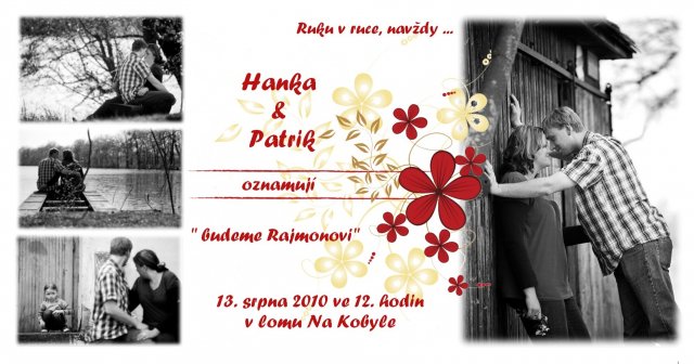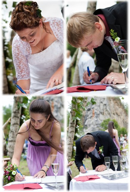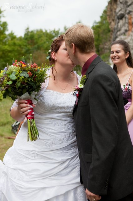 Vše dopadlo tak jak jsme si představovali, sice byl velký strašák počasí ale prostě to vyšlo - jak řekl můj švagr ve čtvrtek večer "prostě pršet nebude". Velké díky, které nejde ani popsat je pomoc hodně moc lidí, bez kterých by se to nezvládlo - přes auto pro nevěstu, výzdobu lomu, výzdobu hostiny až po drobné pomoci, které tvořili naší pro nás krásnou svatbu. Ale pár poděkování jednotlivých osobám si neodpustím:
