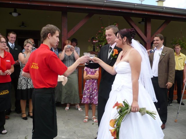 Celý den byl naprosto úžasný. Snažili jsme se vychutnávat každou chvilku. Všem strašně moc děkujeme, že pro nás krásný den s námi prožili v tak veselém duchu. Nejvíce děkujeme rodičům, že nám připravili tak krásnou svatbu - byla to svatba snů děkujeme.