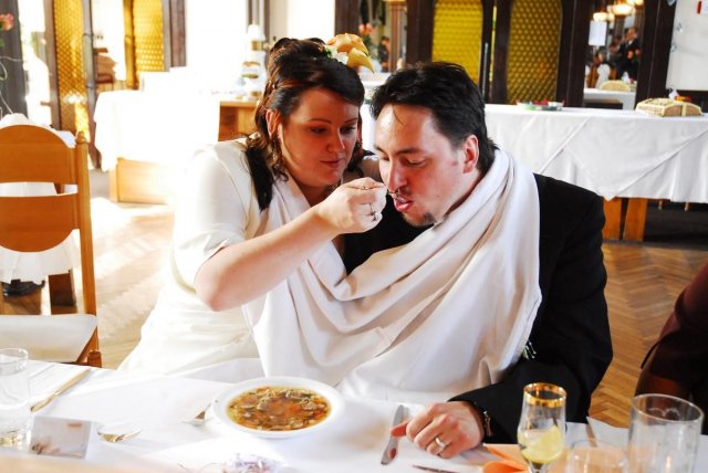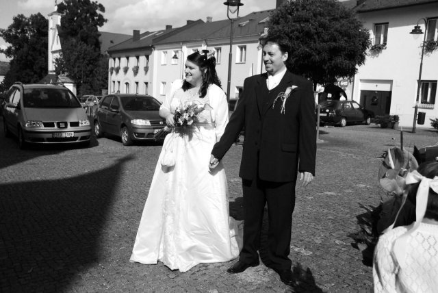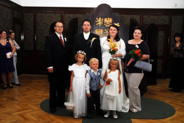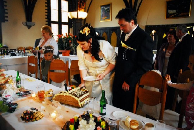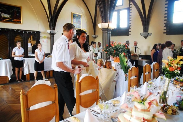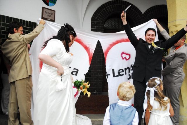 Bylo to úžasné, všechno klaplo, tak jak mělo, i když nám vybouchlo auto den před svatbou, ale neviděla jsem v tom velkou ztrátu, jen spíše zklamání, ale nevadí. Od rána vše probíhalo podle plánu, ale jak čas rychle utíkal, nějak jsem se v čase ztrácela a najednou byl obřad. Jelikož bydlím 100 metrů od Radnice v Ostravě Vítkovicích, rozhodla jsem se, že na obřad půjdeme pěšky... neobvyklé, ale zvládli jsme to. Celou tu dobu před svatbou jsem se cítila v pohodě, ale v obřadní síni to na mě dolehlo a najednou se mi spustily slzy, ale to ta hudba... hih... No a pak to šlo už v pohodě... odjezd na svatební hostinu do Hradce nad Moravicí, kde v Červeném zámku jsme měli hostinu a i také nocleh. Super hostina, výborné jídlo, čokoládová fontána - vřele všem doporučuji, měla úžasný ohlas... také pár překvapení a zábava od svědkyně především posílání lampionových přání, dlouhatánský ohňostroj od tatínka, ale také únos nevěsty mými bratranci a bratrem... Zábava byla super, ale strašně rychle to uteklo... klidně bych si to i zopakovala...
