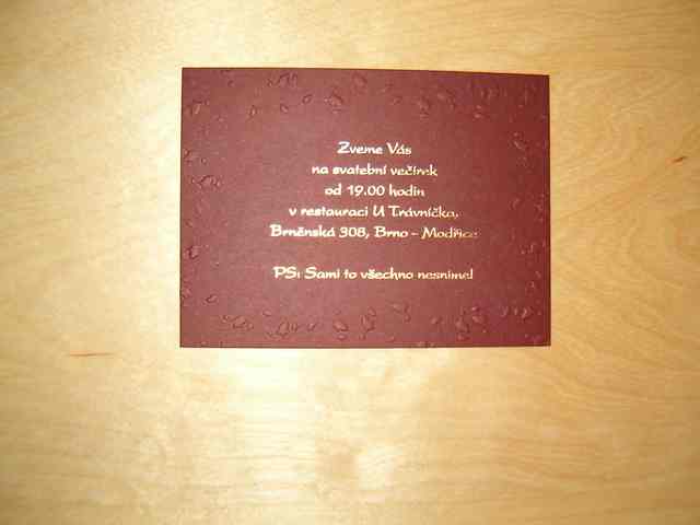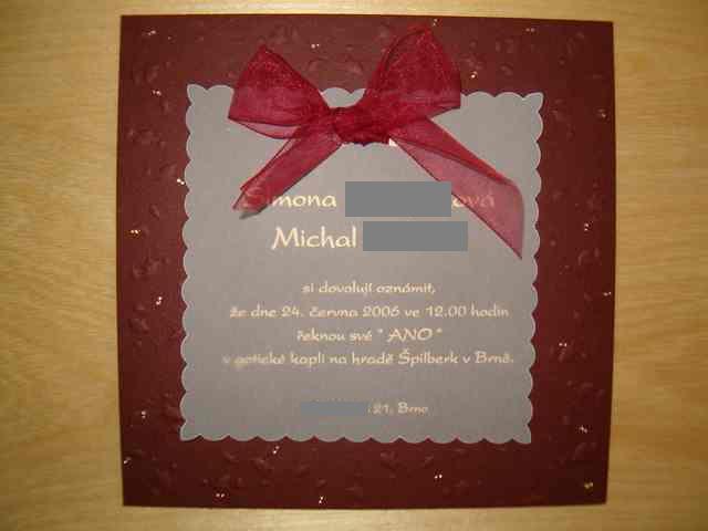 Tesim se na nadheru ciste gotiky v goticke kapli na hrade Spilberku v Brne 24. cervna 2006 ve 12.00 hodin... Ostatnim nevestam dekuji za inspiraci, rady a pujcene fotografie a preji bezproblemove pripravy na svatbu!