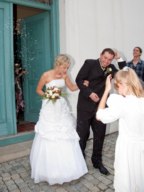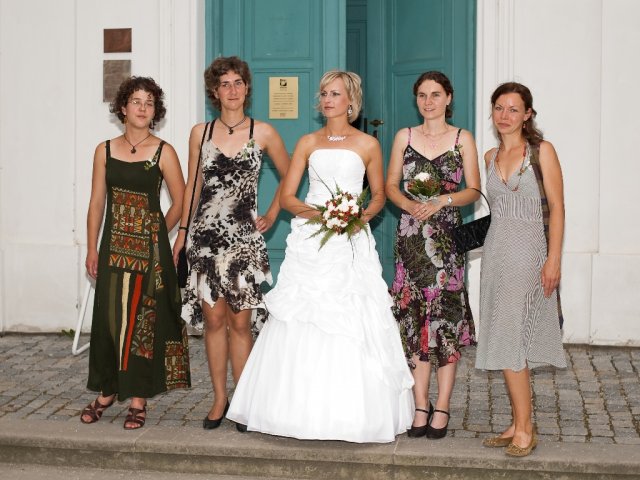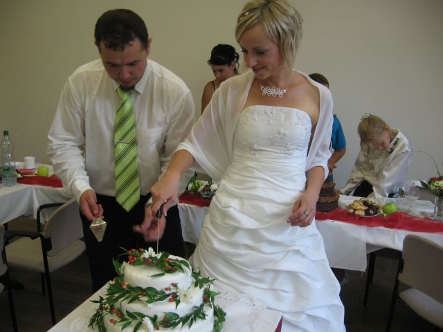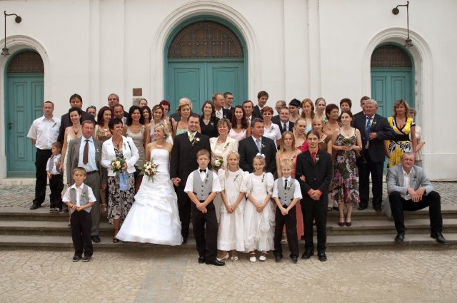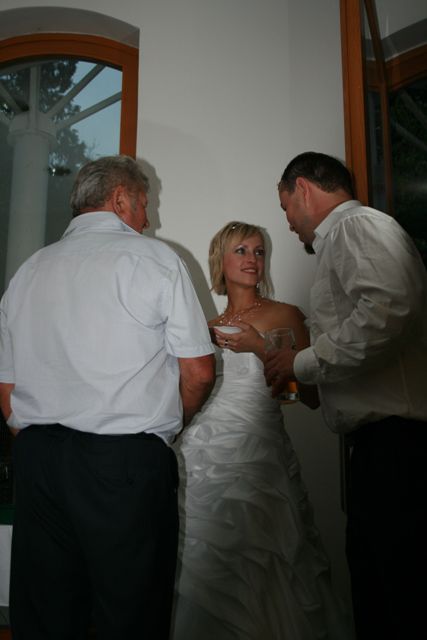 Bylo opravdu veselo a novomanželům se to líbilo moc! Díky mým tetám, sestřenkám a všem ostatním, kteří nám pomáhlali s přípravami, obsluhou na rautu a s posvatebním úklidem. Díky moc. Babičkám se omlouvám za poněkud netradiční pojetí svatebního vese…