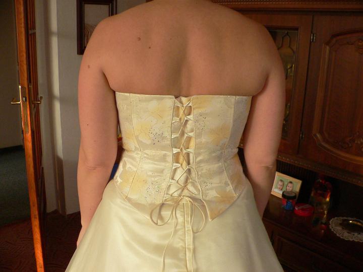 Nakonec jsem se odhodlala sem dát fotku před začátkem cvičení t.j. 3 měsíce před svatbou a foto ze sv. dne. Jestli váháte, zda začít cvičit - moje rada je - URČITĚ ANO!!! Necvičila jsem kvůli šatům - ale kvůli zdraví, v rámci rekonvalescence po těžké dlouhé nemoci - a nakonec se to hodilo i do šatů. Vám to určitě půjde snadněji - zdravé tělo reaguje rychleji. Snad to někoho bude motivovat.... J