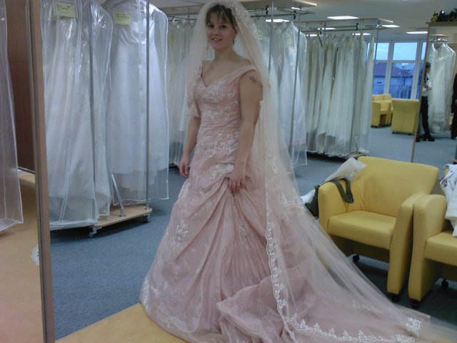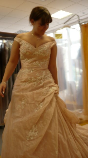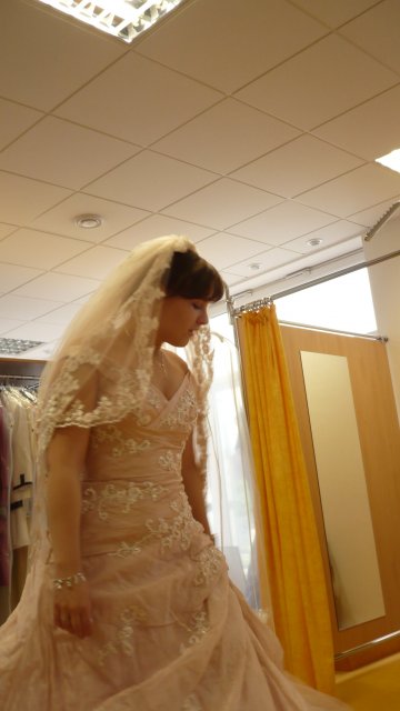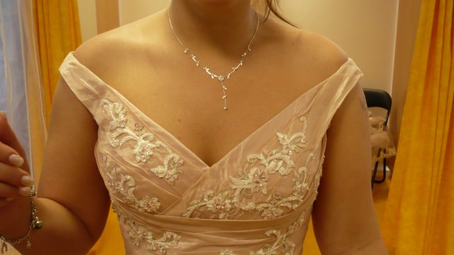2- Svatební salon Potěšení 79, šaty jedny hezčí než druhé, vybrala jsem si dvoje favoritky, ale cena