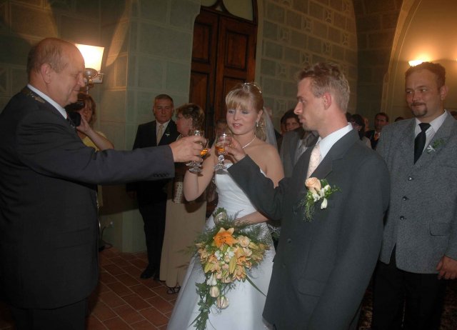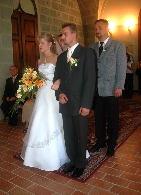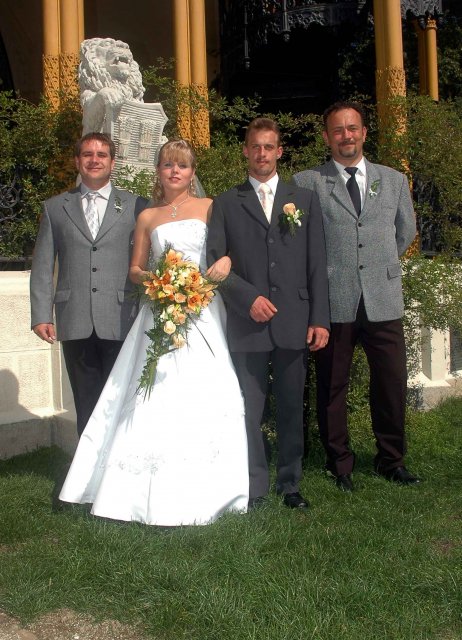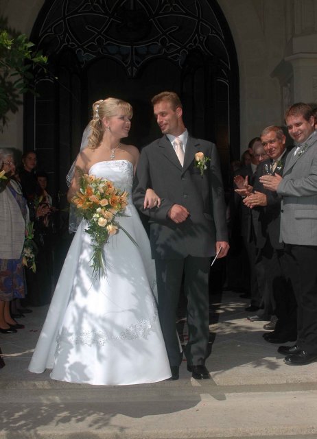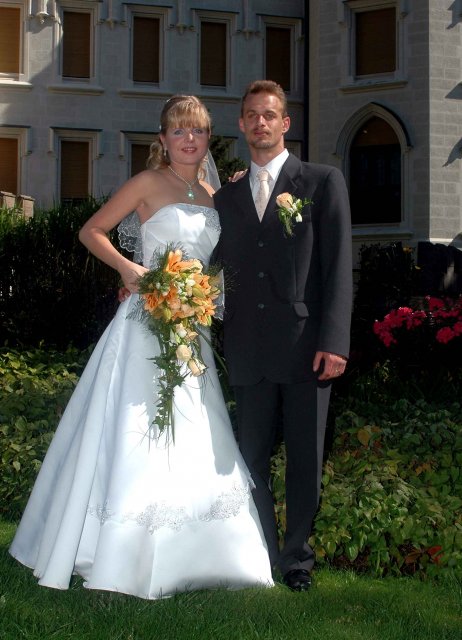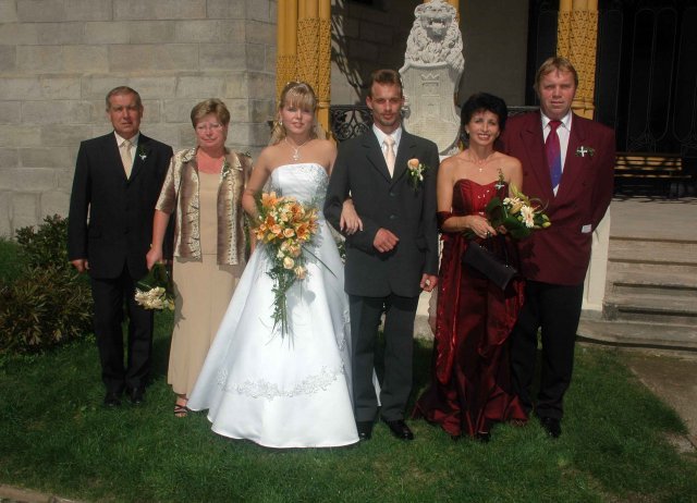 Bylo to jedním slovem neopakovatelné. Náš dík patří naším rodičům, kteří nás ve všem bezmezně podporovali a tolerovali naše "úlety". Hlavně bych chtěla poděkovat mým rodičům, kteří se mnou absolvovali veškeré přípravy od výběru šatů počínaje a přípravou pohoštění u nevěsty doma v den svatby konče. A samozřejmě děkujeme všem, kteří v náš den "D" byli s námi, nebo nám alespoň na dálku drželi palce. Děkujeme!!!!!