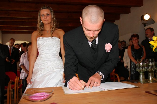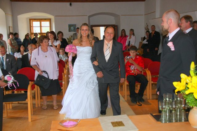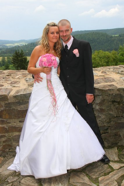 Náš svatební den byl prostě úúúžasný,krásný,romantický.Všechno klaplo,tak jak mělo i počasí nám vyšlo.Takže všechno super.Děkujeme všem našim kamarádům,známým i rodině,že ten náš velký den byly s námi.