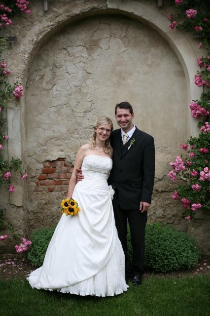 Náš svatební den byl kouzelný. Děkujeme všem za pomoc a za podporu, máme vás všechny moc rádi. Speciální poděkování patří rodičům a svědkům. Já děkuji ještě svému manželovi, miluji tě a jsem s tebou moc šťastná.