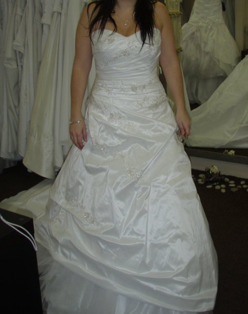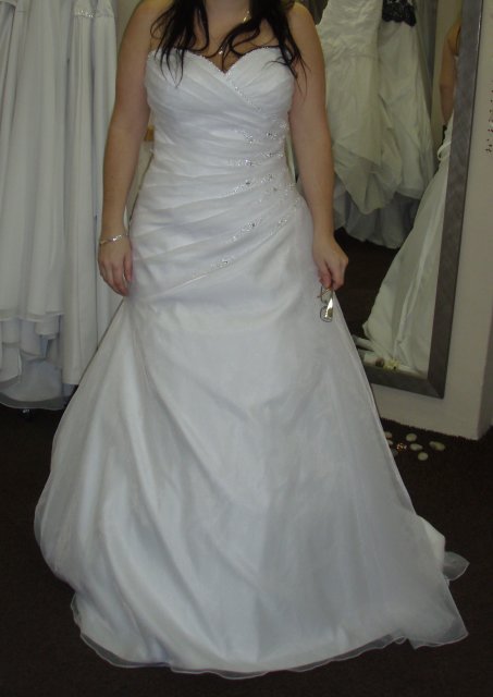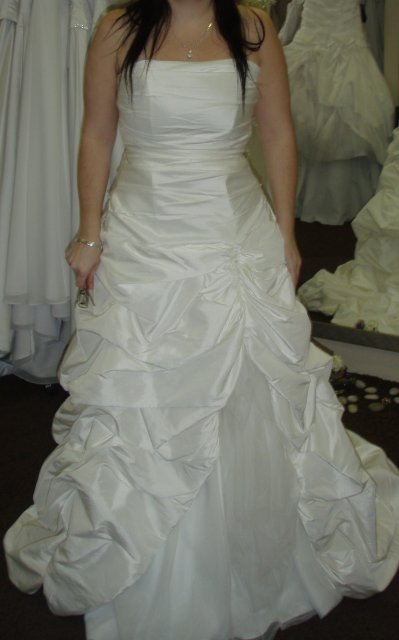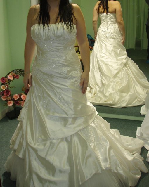 7.7. generální zkouška svatební šatů, vybané Pronovias Roble jsou mi velké, změna na Pronovias Rizo - v podstatě stejné šaty, jen jiný materiál a o číslo menší