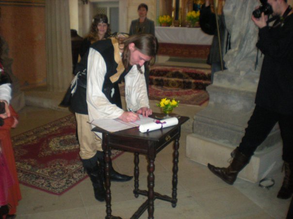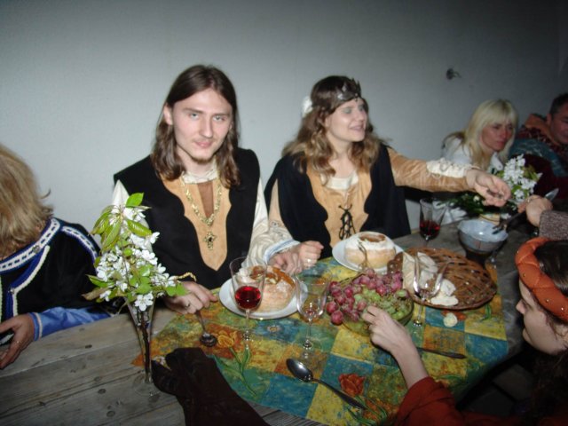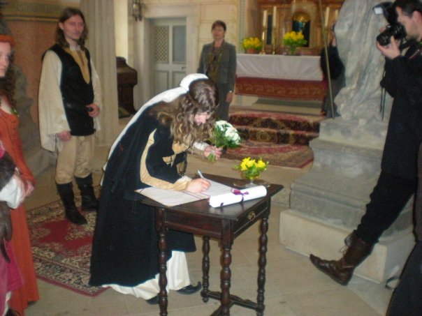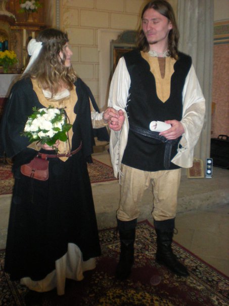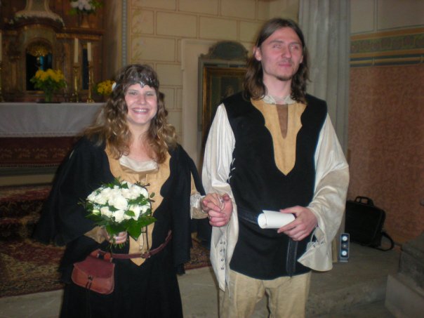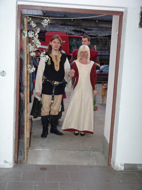 svatba to byla úžasná, celá pojatá ve středověkém stylu. Sladěné byly nejen kostýmy, ale také hostina a všecny aktivity. Ukázky a výuka historických tanců, šermířské souboje, to vše bylo možno na naší svatbě vydět a zažít.