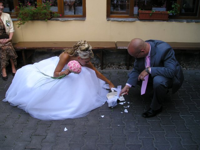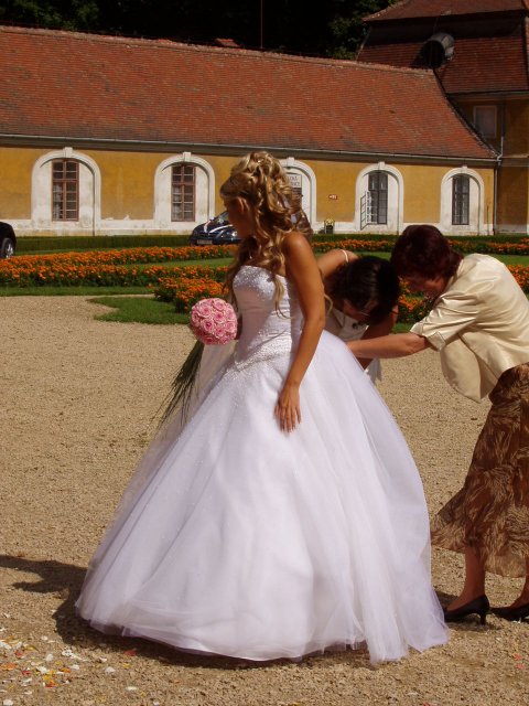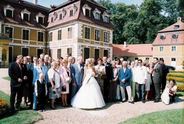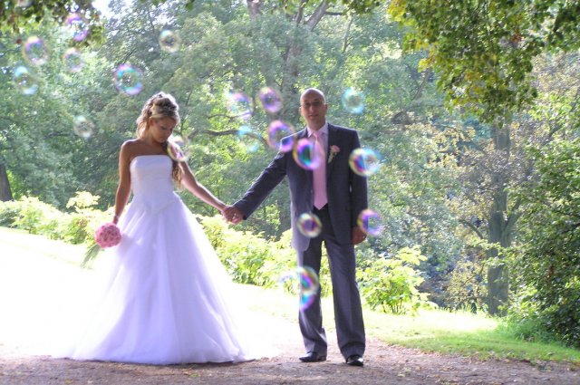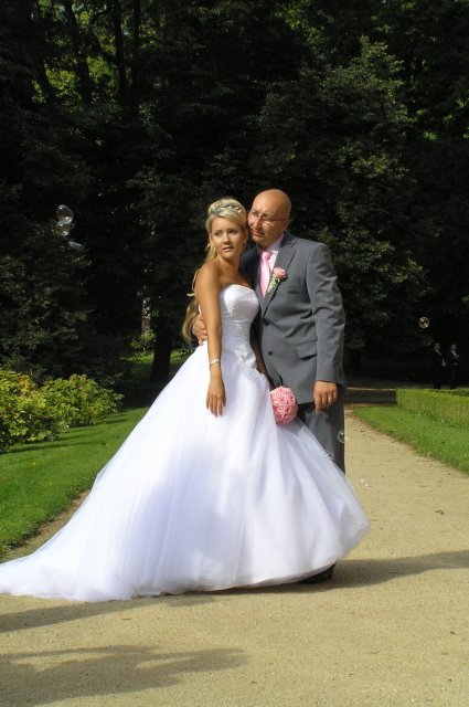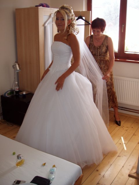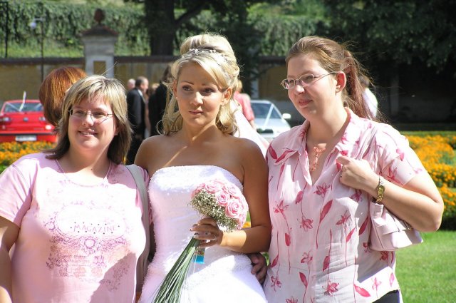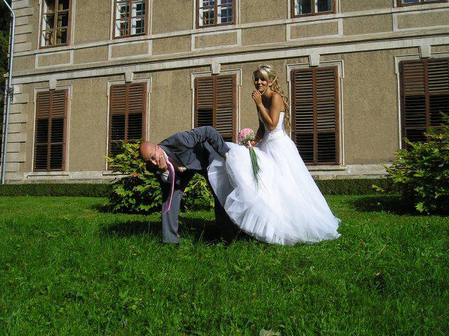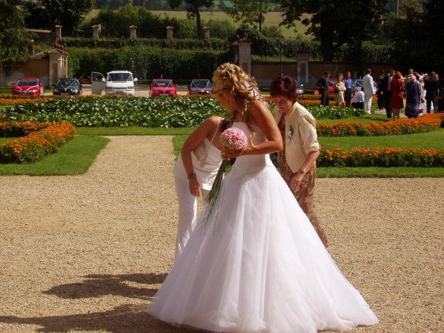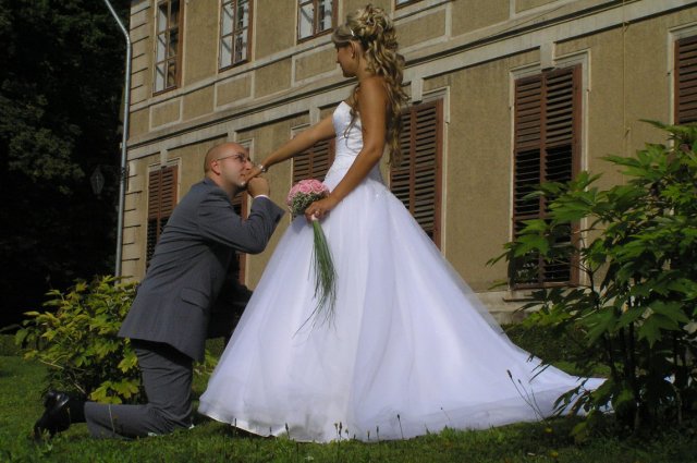Vše se nakonec obrátilo z hororových předsvatebních dnů na nádhernou pohádku.Od rána o mě manžílek předevšemi mluvil jako o princezně, viděl mě ale až na obřadu a přišlo i na slzy dojetí, mohu všem jen doporučit. Naše pohádka byla zakončená úžasným svatebním darem našeho kamaráda a to nazdobením svatebního pokoje 70 růžemi, spoustou zapálených svíček a plátky růží posypaných všude okolo.Nádhera.Hezčí den jsem nezažila..Prosím o nekopírování fotek do Vašich alb.Děkuju za pochopení..