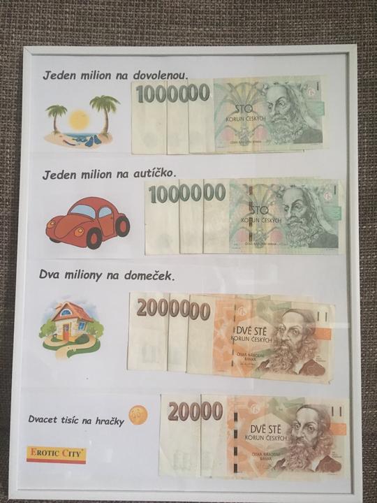 Přáli jsme si převážně peníze. Opravdu nás překvapily 2 dárky: vymalujsisam.cz kdy sme dostali naši foto na platně a musíme ji vymalovat. A další z asteriamaps.com kde máme konstelaci hvězd v den našeho setkání.