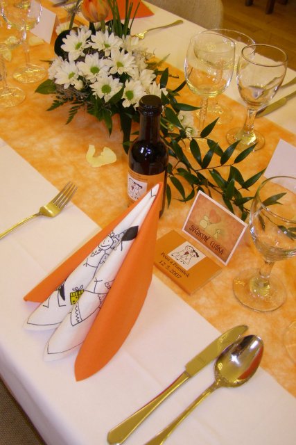 Svatba bude lazena do oranžova. Předběžný termín stanoven na květen, teď jen počkat, jestli nám tento termín vypíšou ... Říjen začala jsem tvořit vývazky Listopad koupeny svícny na čajové svíčky a krabičky na výslužky