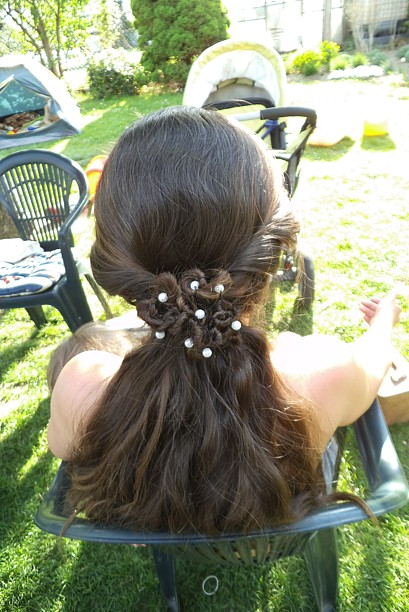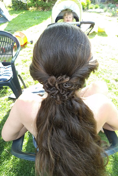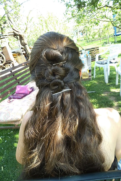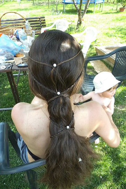 Včera jsme si daly kafčo a 16ti letá dcera kamarádky si hrála s mýma vlasama. Vzhledem k tomu, že mi vybouchla kadeřnice to bude asi ona, kdo mě učeše :o)