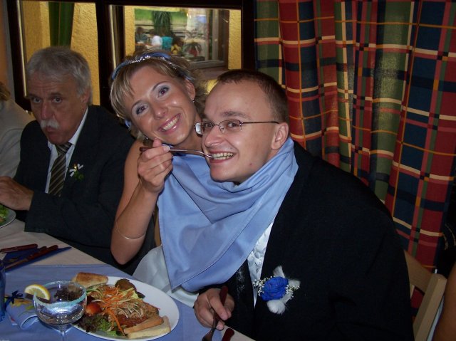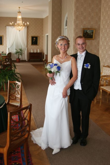 2.7.2005 ve 14,30 jsme si řekli své "ANO".Byl to nejkrásnější den našeho života!!!! Děkujeme všem, hlavně našim rodičům za podporu,všem našim přátelům za pomoc (hlavně Danielovi K.za limuzínu:)), svatebnímu salónu Perfect Day za nádherné šaty a prstýnky, svatebnímu salónu Adina za perfektní oblek pro ženicha, květinářství Lucie Dubské za úžasné květiny a výzdobu, kadeřnici Lucii za úžasný účes, kosmetičce Gábince za krásné líčení, restauraci Dvoračka za překrásnou a výbornou hostinu, prostě všem, kteří nám pomohli prožít tento nádherný den:) Díky moc!!!!