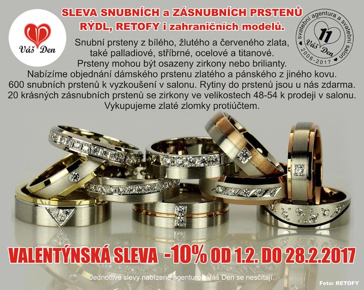 Od 1.2. do 28.2.2017 Vám nabízíme Valentýnskou slevu snubních a zásnubních prstenů -10%! Přidáváme ukázku našich krásných nových zásnubních prstenů RÝDL, které máme v salonu k prodeji ve velikostech 48-54. Těšíme se na Vás v Litovli.