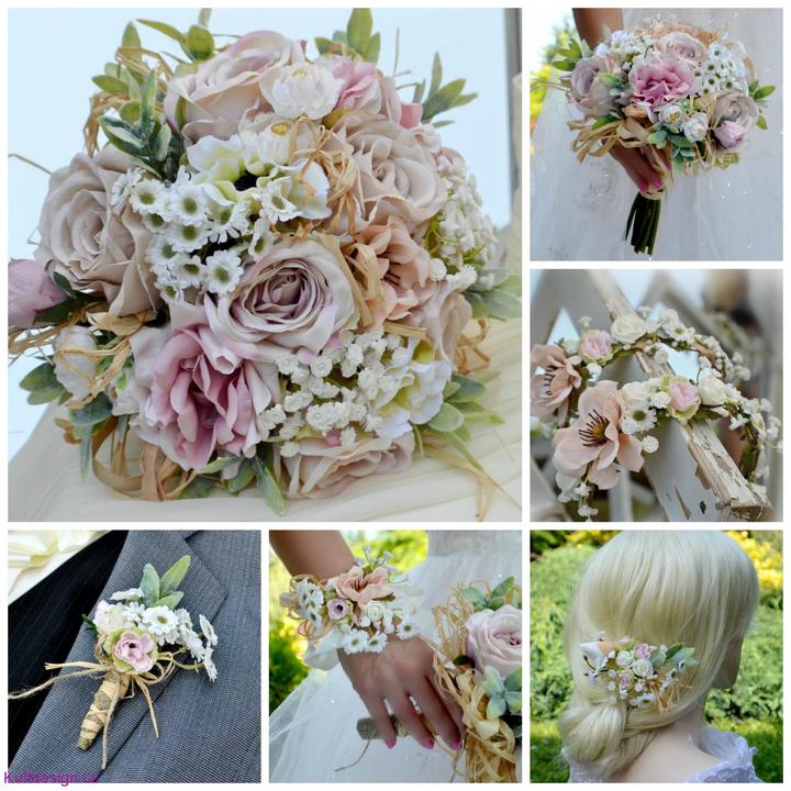 Svatební sety z umělých květin