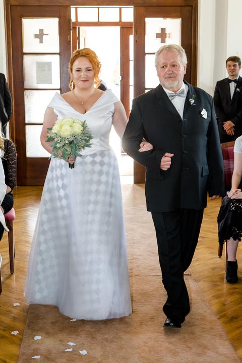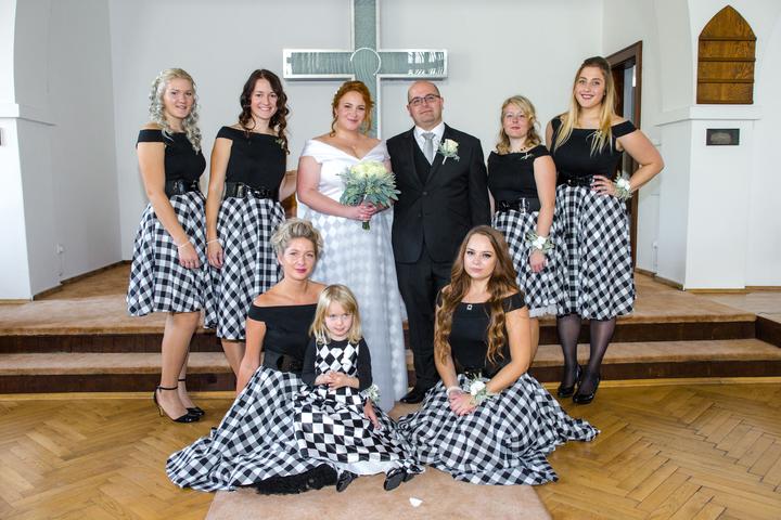 Když se berou dva šachisté, kteří chtějí mít i výzdobu a šaty nevěsty tématické, má návrhářka těžkou práci. Navíc si nevěsta přinesla roli kostkovaného saténu na šaty. Abych šaty trochu zjemnila, dala jsem na šachovnici nejprve jednu vrstvu jemného …