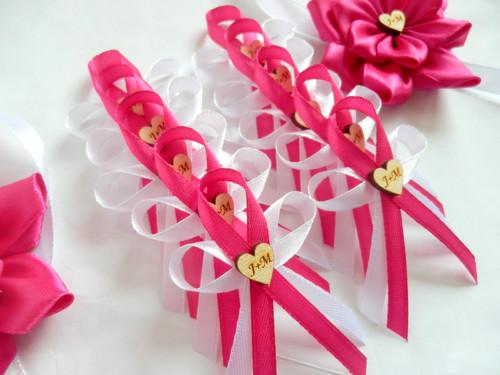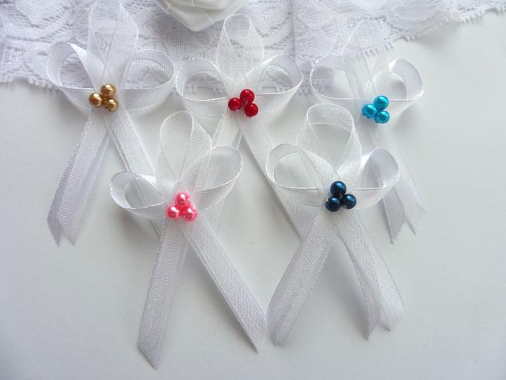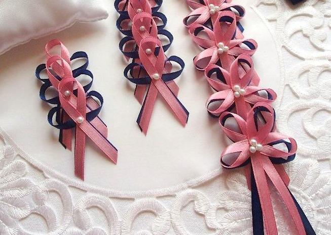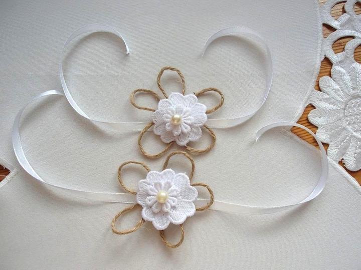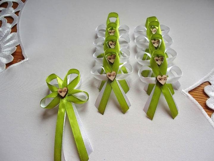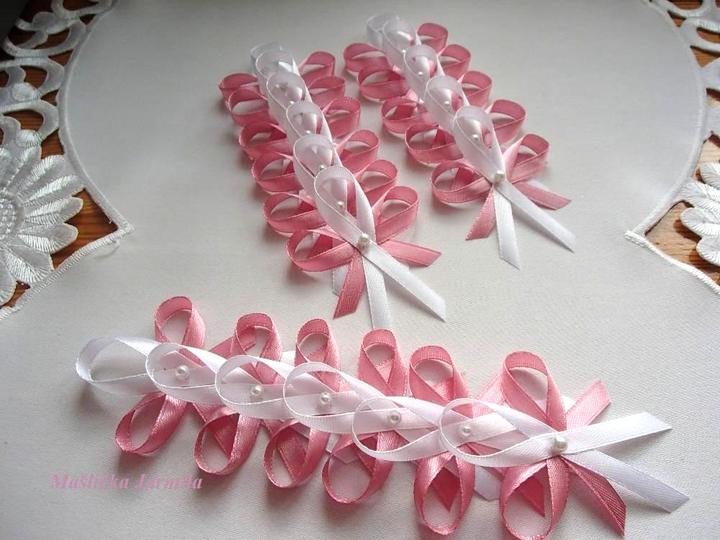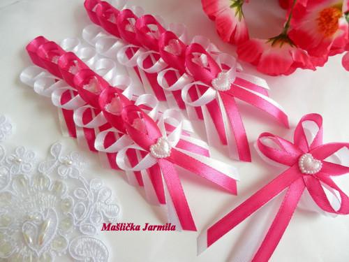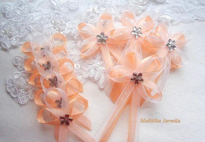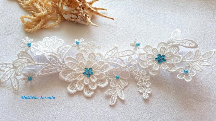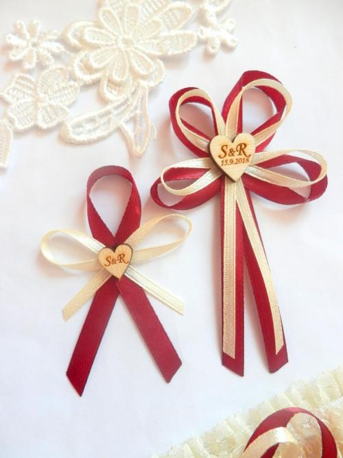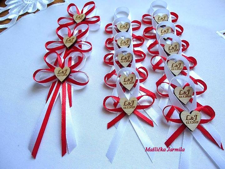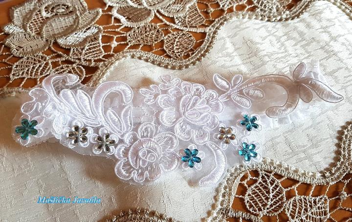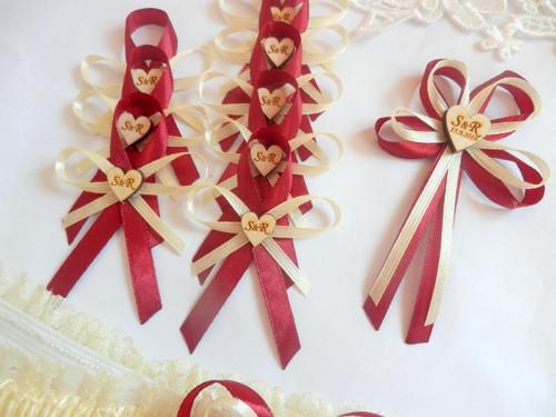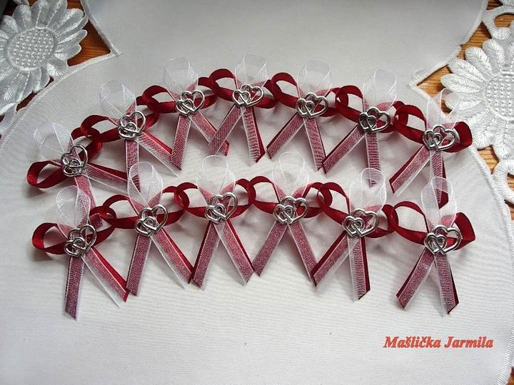 Šiji svatební vývazky malé pro svatebčany, velké pro rodiče a svědky, svatební polštářky, náramky a ozdoby do vlasů pro holčičky, svatební podvazky tradičních i velmi netradiční.