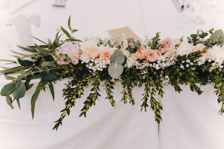 Svatební květiny: nevěsta, ženich, družicky (3x), svědek. Květinová výzdoba: ozdobný věnec na stůl (5 věnců - cca 45 cm), ozdobný podlouhlý věnec (2 věnce - cca 80 cm - stůl novomanželů), květiny na stůl, květiny na slavobránu, obřad, dort, zasedací…