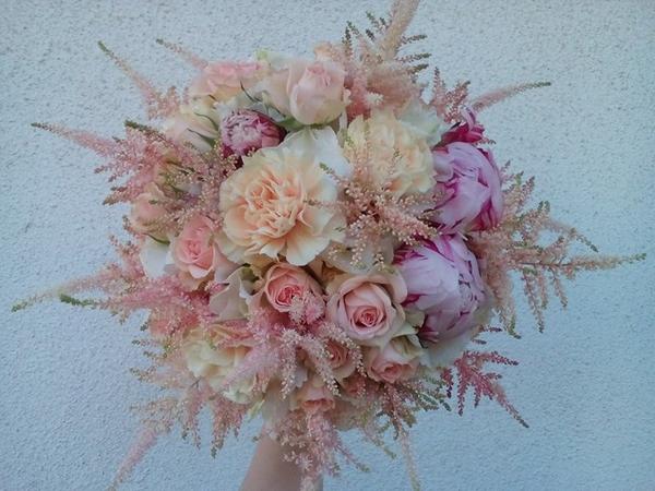 Můžete zvolit kytici čistě bílou , nebo kombinovanou tj . třeba bílou s doplňkovou zelení , nebo růžovou , smetanou , tmavší růžovou . Může být i meruňková + bílá + jemně jako doplněk růžová světlá , nebo může být růžová + mint atd. Variant je opravdu mnoho :-)
