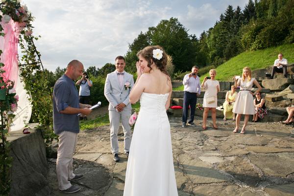 Doporučila bych amfiteátr u hotelu Kam v Malenovicích. Letos jsem tam fotila jednu svatbu a bylo to tam opravdu kouzelné. Ty amfiteátry tam jsou dva - jeden kamenný (ten co je na fotkách) a pak ještě jeden, který je víc zastrčený, takže pokud by tam náhodou byla nějaká akce, tak v tom druhém amfiteátru byste se vzájemně nerušili. Jinak ten oblouk si novomanželé zajišťovali sami, v hotelu ho přímo nemají.
