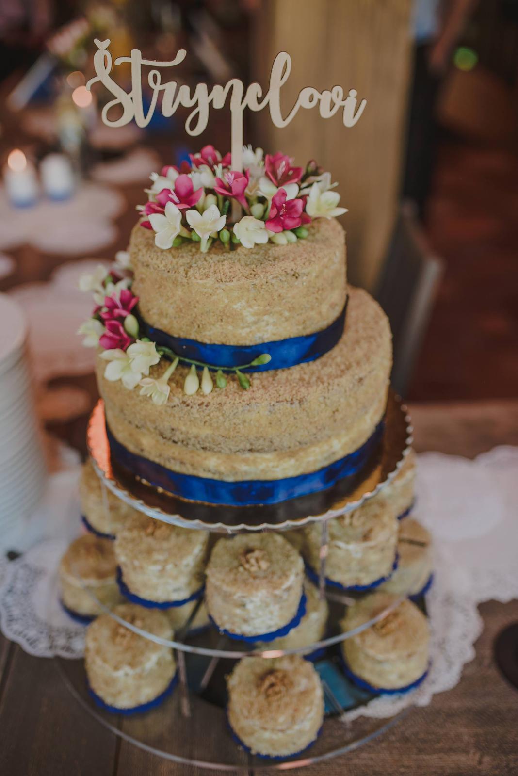 U nás taky menší dort, abychom mohli něco zaříznout a cupcakes. Přijde nám to praktičtější a vypadá to krásně. Dokonce i stojan jsme si na ně vyrobili :-)