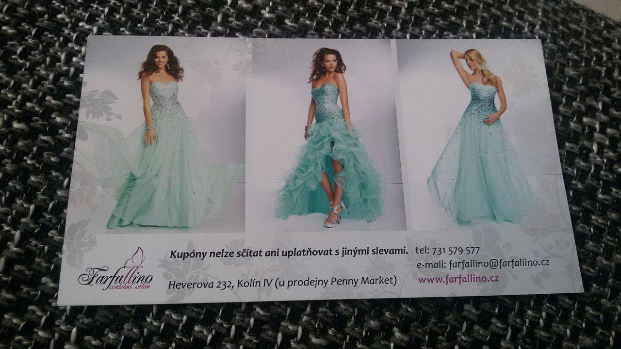 Ahoj holky. Daruji slevový kupón na půjčovné v hodnotě 300kč. Svatební salon Farfalino