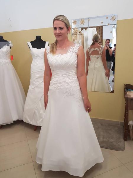 Ahoj nevěsty, před pár dny jsem byla v salonu v Polskem Těšíně. Zkoušela jsem si tam šatičky a líbily se mi, ale teď nevím, zda jsem neudělala blbost. Líbí se Vám na mně? Na fotce mám šaty, které mi ušijí větší a také delší a všijí mi tam podprsenku. Nejblbější je, že jsem zaplatila už zálohu a šaty nejspíš nejdou stornovat. Nevíte jestli by nepomohla nějaká spodnice, aby šaty byly více bohatší? Vážně nevím, co dělat :(