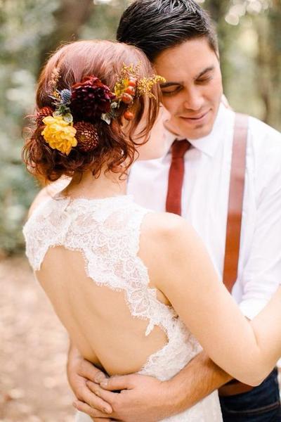 Kazda spravna kvetinarka by mela rict jake kvetiny jsou do vlasu vhodne a ktere vydrzi nejdele a nabidnout je dane neveste.Samozrejme se musi spravne osetrit aby vydrzely co nejdele jako je treba "voskovani".Ja jsem mela napr. ve vlasech chrysantemy,viz foto v albumu.