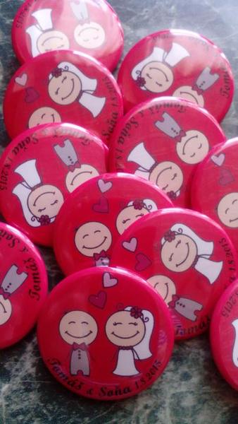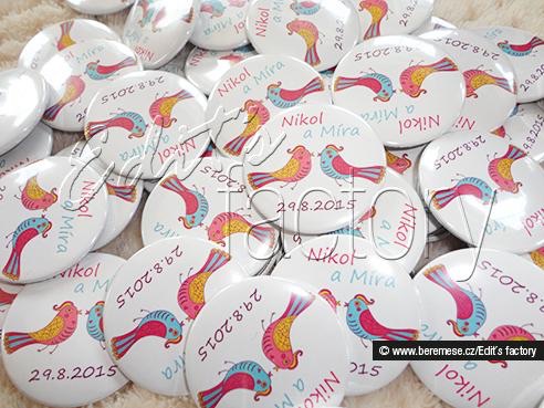 @hanica83 My jsme meli a melo to uspech. Meli jsme tam nas monogram a datum svatby, rodicum a svedkum jsme nechali udelat vetsi s napisem "maminka nevesty" apod., a taky super. Jedine babickam se to ze zacatku nezdalo :) ale nakonec to vzaly na milost a libilo se jim to, ze je to "jakesi moderni" :) Ale doporucuju. Cenove to dokonce vychazi lepe jak vyvazky.
