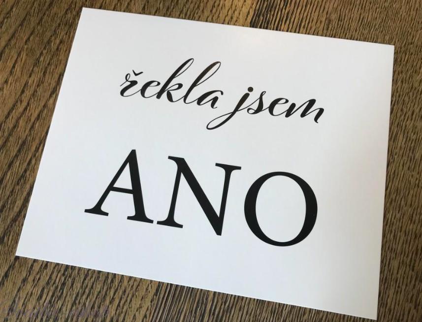 Česká rekvizita na svatební focení s nápisem řekla jsem ano.