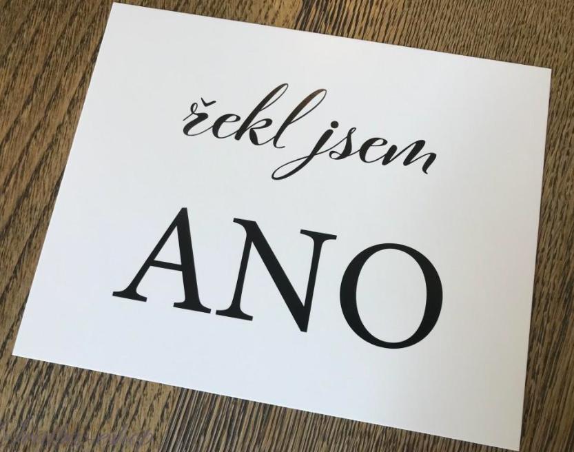 Česká rekvizita na svatební focení s nápisem řekl jsem ano.