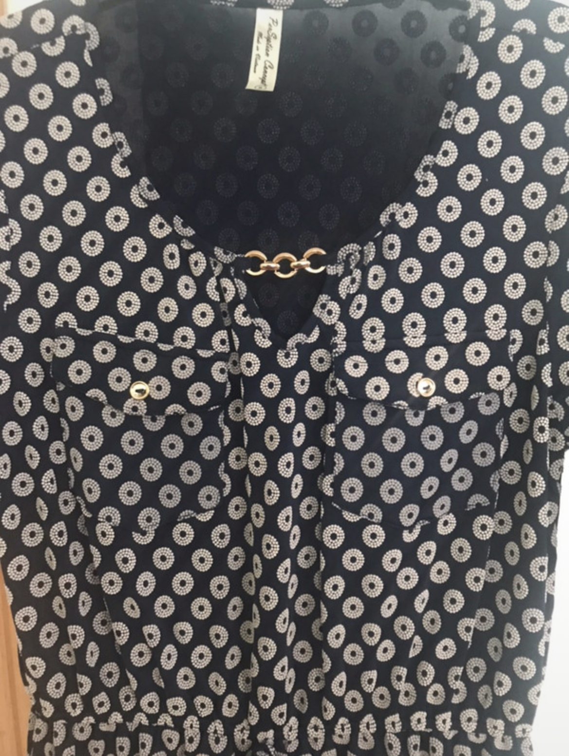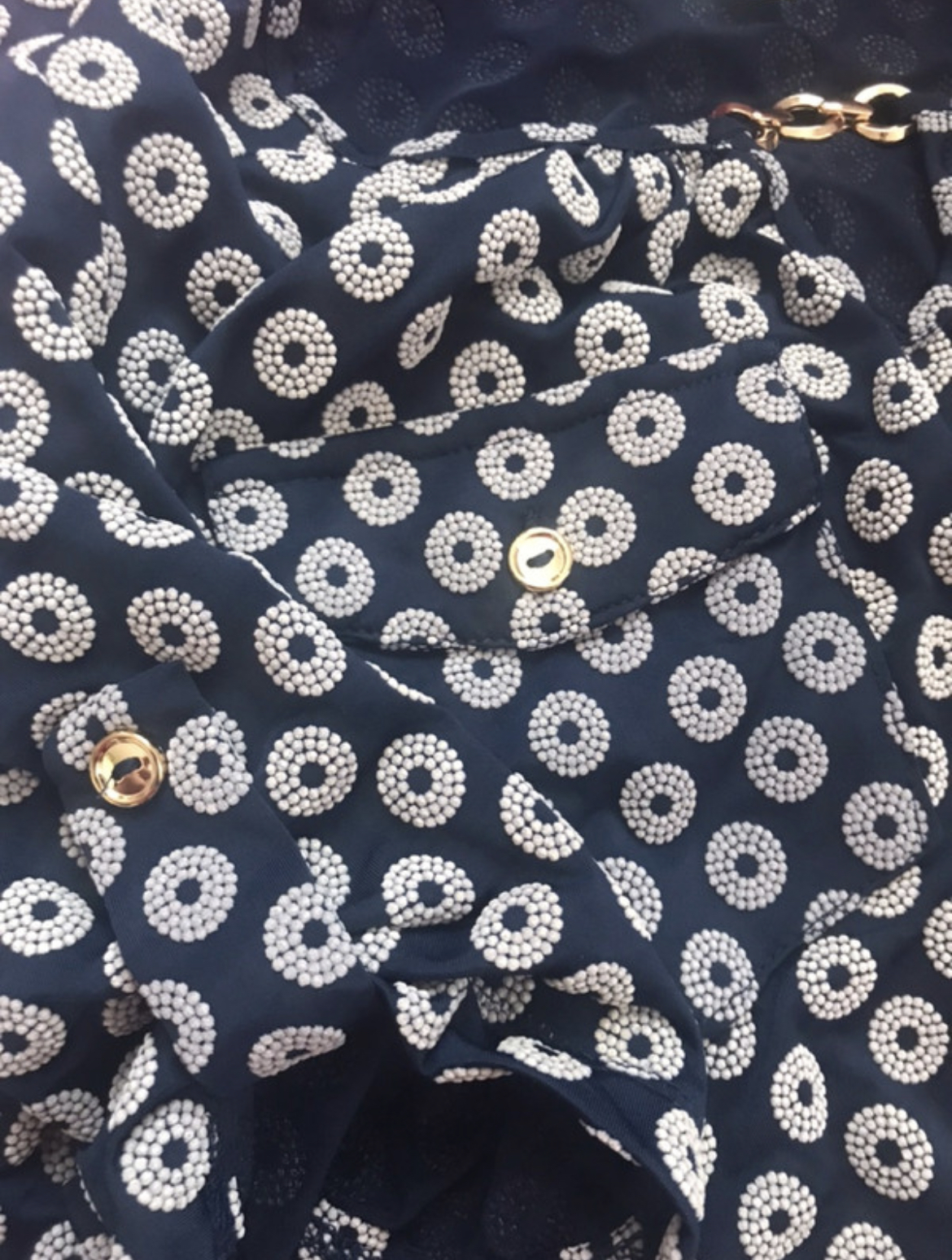 úplně nové tmavě modré šaty s plastickými květy, dovoz z US, zdobené zlatým řetízkem a knoflíky, v pase na gumu, vel. S