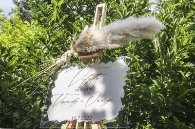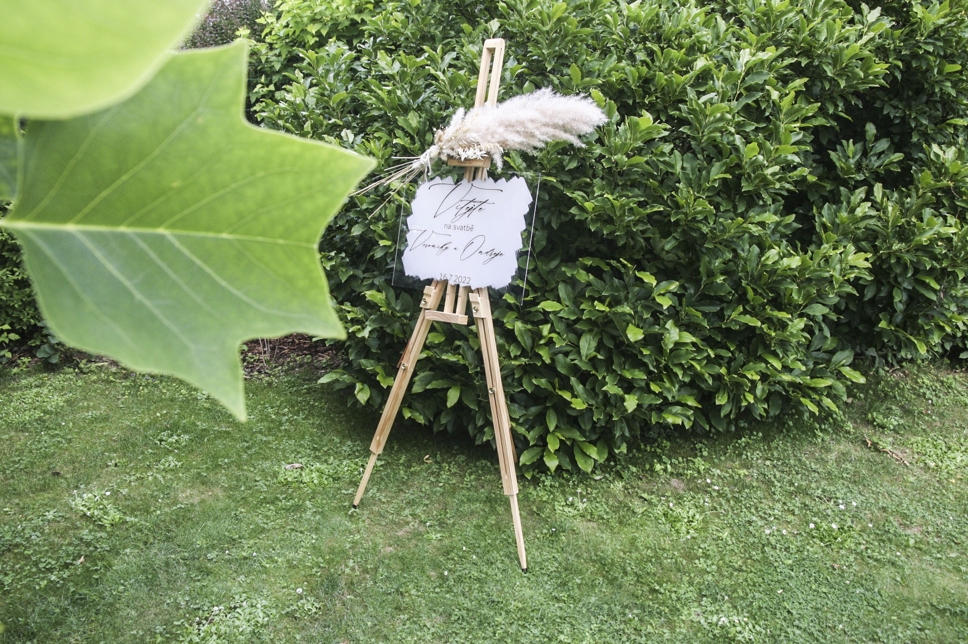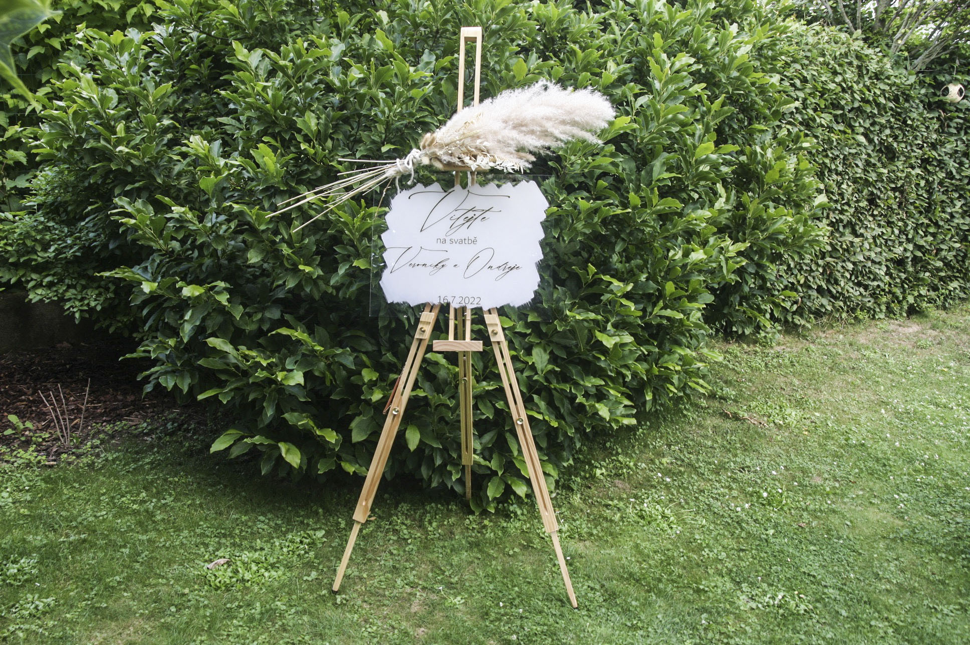 Dřevěný stojan na uvítací ceduli