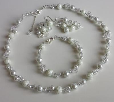Nabízím soupravu nejen svatební bižuterie, čirý jednořadý náhrdelník (délka 45 cm), dvoje naušničky viz obrázek. Cena za sadu, ale lze i jednotlivě, případně napište a vystavím zvlášť, chcete-li k sadě náramek, napište si o něj, případně vyrobím v jiné barvě (poslední FOTO). Ohňovky mám ale i v mnoha dalších barvách :o) Cena za sadu náhrdelníku a naušnic. K naušničkám a náhrdelníčku, lze vyrobit i vlásenky a další doplňky.