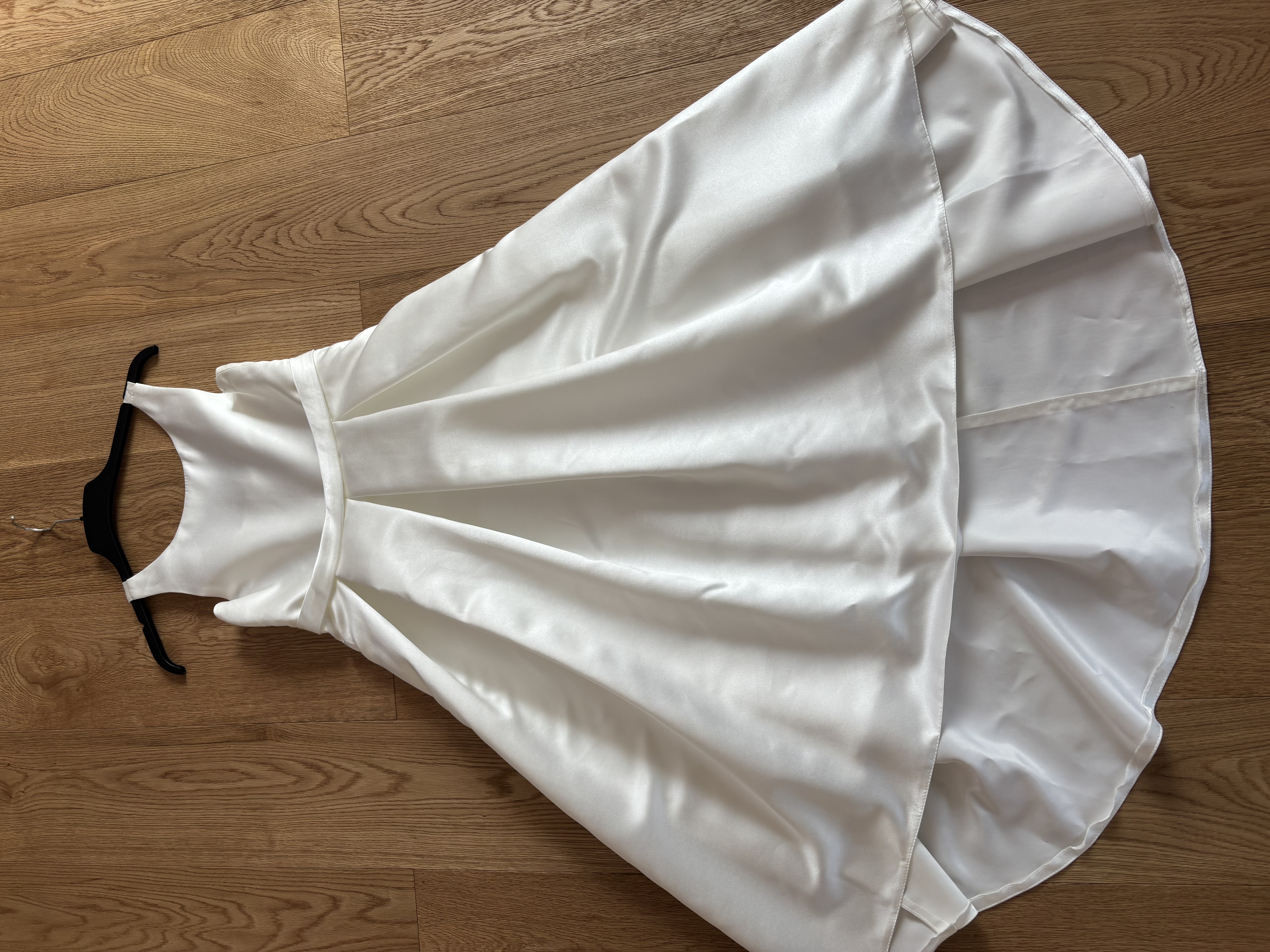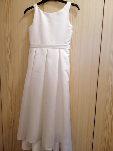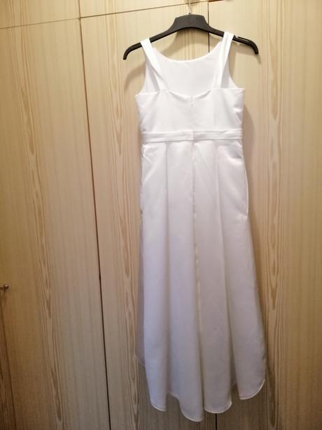Prodám saténové šaty pro mladou družičku, barva bílá (Ivory), vel. 158-164 (12 let), šikmá délka, vpředu kratší (od krku 95cm), vzadu delší (115 cm) - velmi elegantní, bohatá spodnička, vzadu na zip, vhodné k nevěstě s Ivory svatebními šaty. Originál z obchodu: JJs House.com. Cena: 600,- Kč