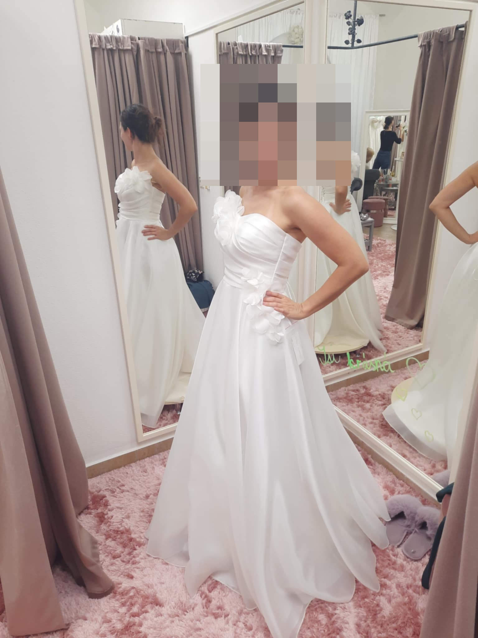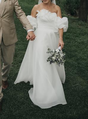 Svatební šaty Carolina byly ušité jako jediný kousek v salonu DreamDress v Kroměříži, upravené na mou postavu 161 cm a po svatbě vyčištěny a vyžehleny v profesionální čistírně. Jako doplněk mají rukávky, které lze nasadit či sundat dle potřeby.