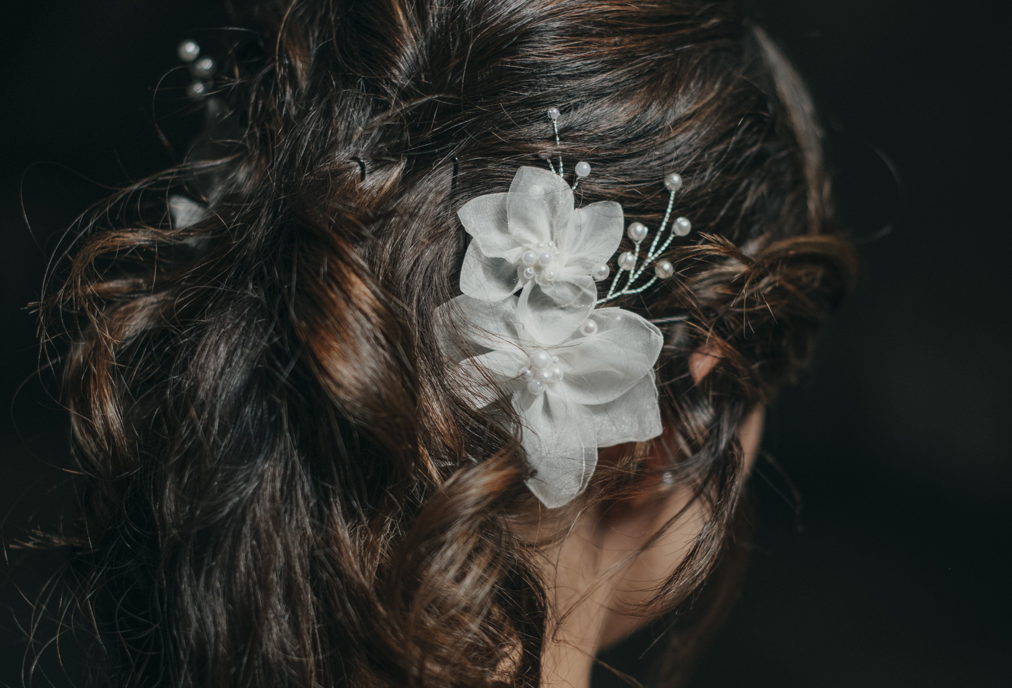 K šatům skvěle ladí závoj 130 cm s perličkami a ozdoba do vlasů s perličkami na míru vyrobená z organzy, aby ladila k šatům.