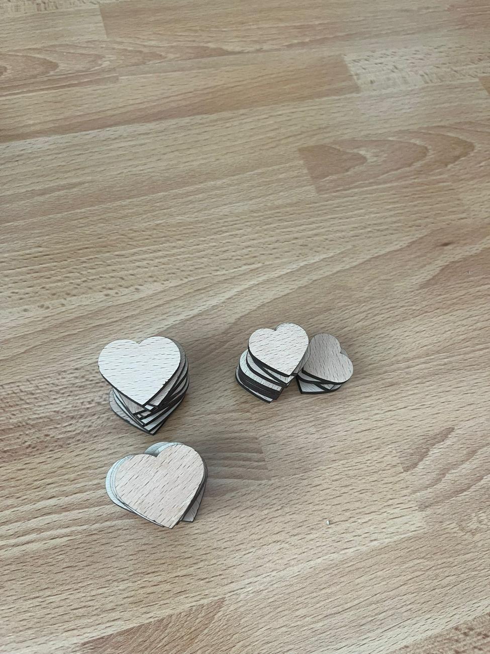 Dřevěná srdíčka malá (25mm - průměr a 3mm - tloušťka) - 14ks Dřevěná srdíčka velká (30 mm- průměr a 3mm - tloušťka) - 20ks