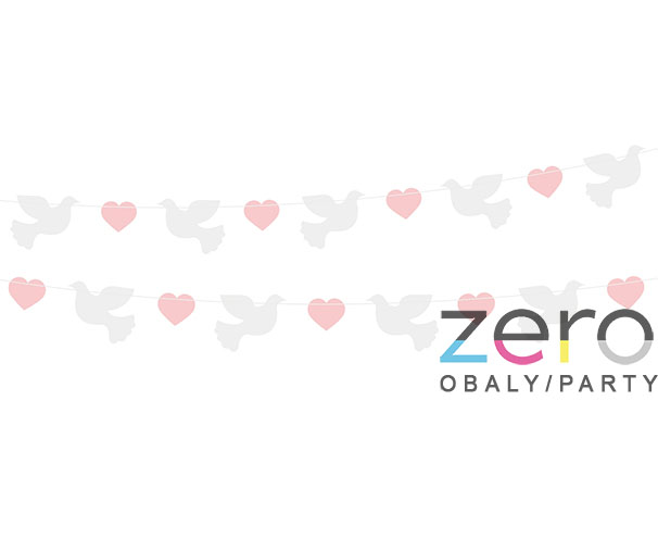 Girlanda papírová "holubičky a srdce" 150 cm - bílá/růžová